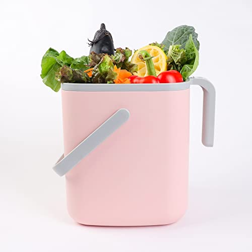 BLUE GINKGO Kitchen Compost Bin - Easy Clean Food Waste Bin for Kitchen with Handles | Countertop Compost Bin Kitchen Food Scrap Pail Bucket | Made in Korea (1.32 gal, 5 L) - Pink, 1.32 gal / 5 L Item Sku:
