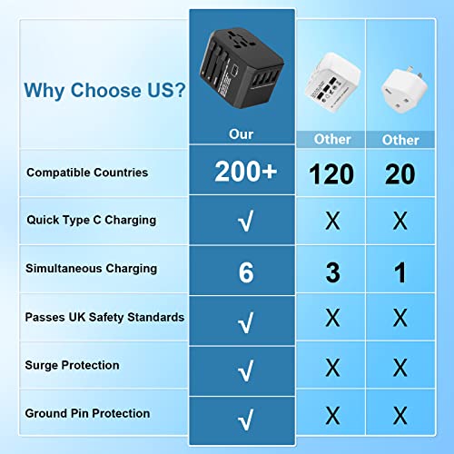 Evershop Universal Travel Adapter Plug Adapter European for 224+Countries,Adaptateur Prise International with 4 USB+Type-C+AC Power Adapter for Canada/UK/Italy/Europe/USA/Asia,Travel Essentials Accessories, Black Item Sku: